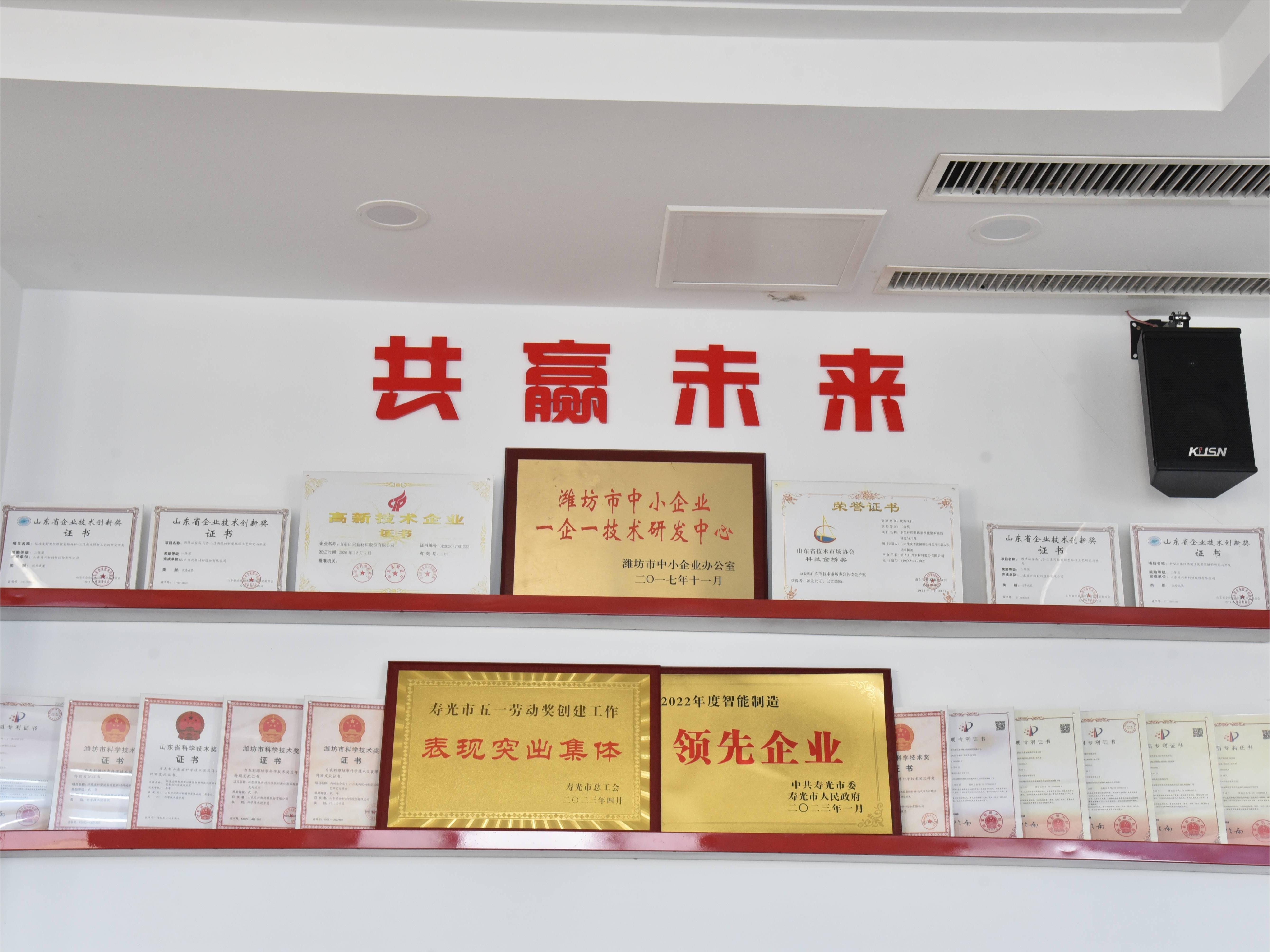 公司高度重视科技创新,现建有潍坊市日兴环保材料研究院,拥有"山东省企业技术中心"、省工业企业"一企一技术"研发中心等诸多省市级研发平台,取得授权专利33项,其中发明专利11项,主打产品溴化SBS、聚(丙烯酸五溴苄基酯)、三溴新戊醇、三(三溴新戊基)磷酸酯、二溴新戊二醇、甲基八溴醚等已在业内达到较高水平。